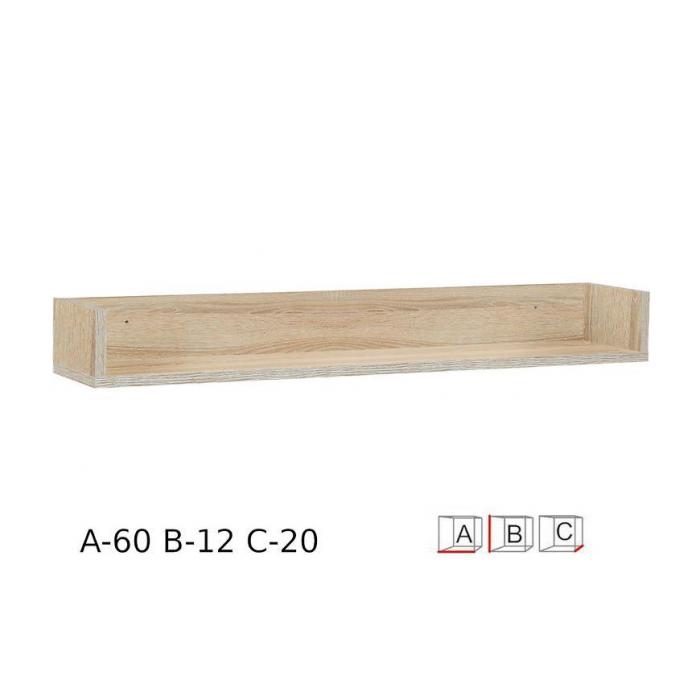 Półka wisząca została wykonana z płyty wiórowej laminowanej w kolorze dąb sonoma.
