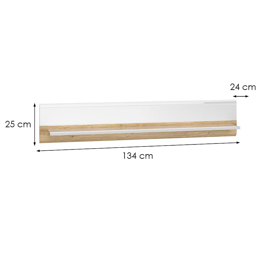 Półka Adagio to nie tylko praktyczne rozwiązanie do przechowywania, ale także wyrafinowany element wystroju wnętrza, wprowadzający nowoczesny styl do każdego pomieszczenia. Z głębokością 24 cm, szerokością 134 cm i wysokością 25 cm, ta półka doskonale łączy funkcjonalność z estetyką.