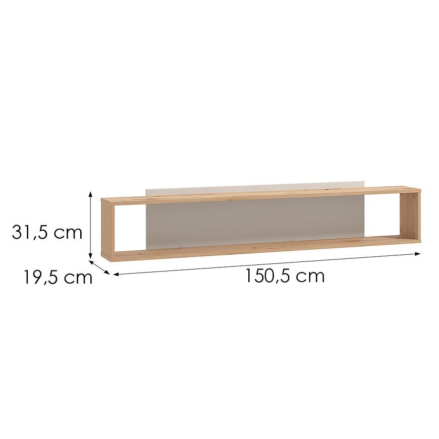 Szerokość 150,5 cm zapewnia wystarczającą przestrzeń do przechowywania książek, dekoracji czy drobnych akcesoriów. Półka wykonana z płyty wiórowej laminowanej o matowym wykończeniu jest odporna na uszkodzenia i łatwa w utrzymaniu czystości. Wisząca konstrukcja pozwala zaoszczędzić miejsce, zachowując elegancki wygląd pomieszczenia.