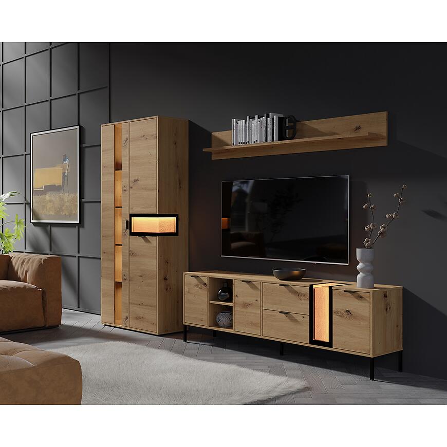 Półka utrzymana jest w jasnym, drewnopodobnym wybarwieniu artisan, które wprowadza do wnętrza ciepły i naturalny charakter. Matowe wykończenie nadaje półce eleganckiego i nowoczesnego wyglądu, harmonijnie komponując się z różnymi stylami aranżacji wnętrz.