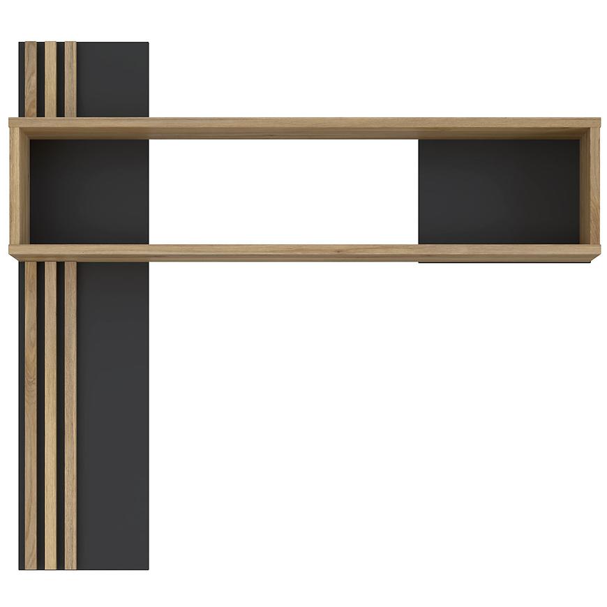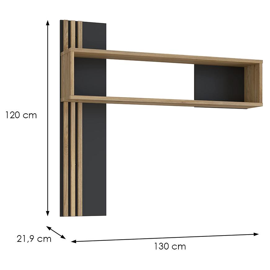 Wymiary półki pozwalają na optymalne umieszczenie jej w różnych pomieszczeniach. Kolor półki w odcieniu dąb mauvella w polączeniu z czernią nadaje jej elegancji i nowoczesności. Matowe wykończenie podkreśla jej stylowy charakter. Konstrukcja półki wykonana jest z trwałej płyty wiórowej laminowanej, gwarantując solidność i trwałość.