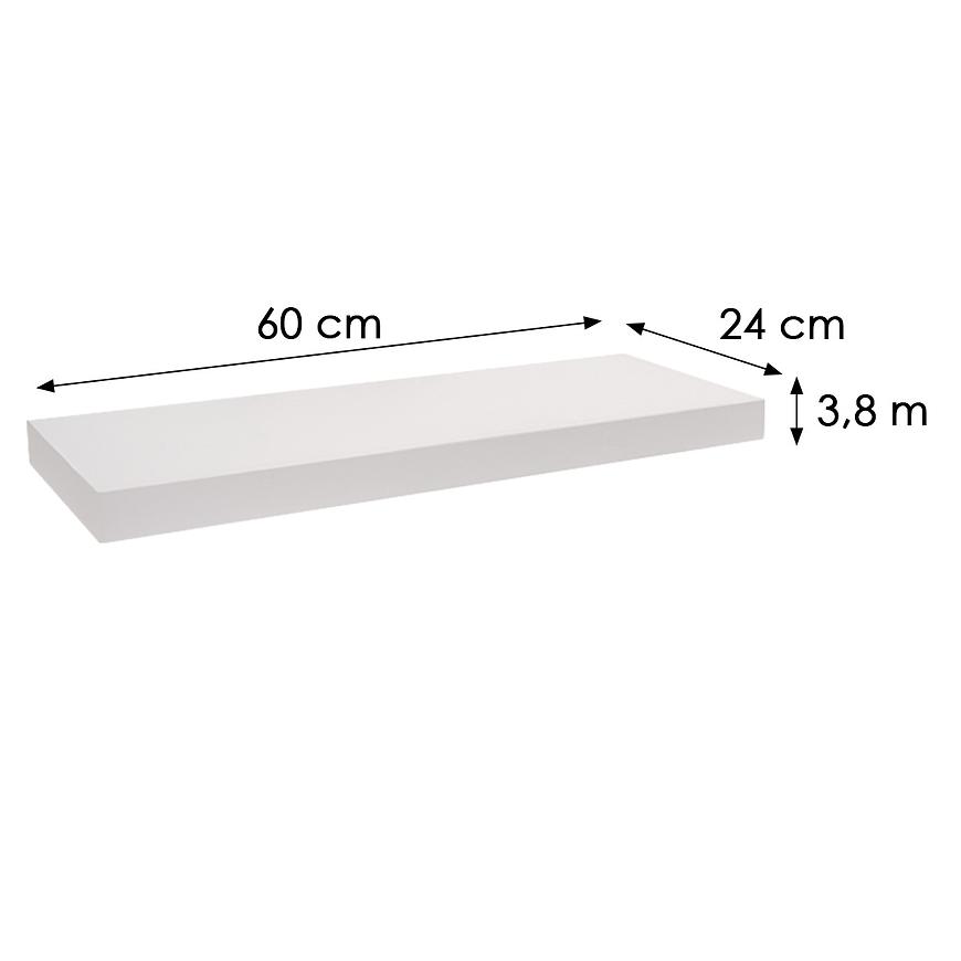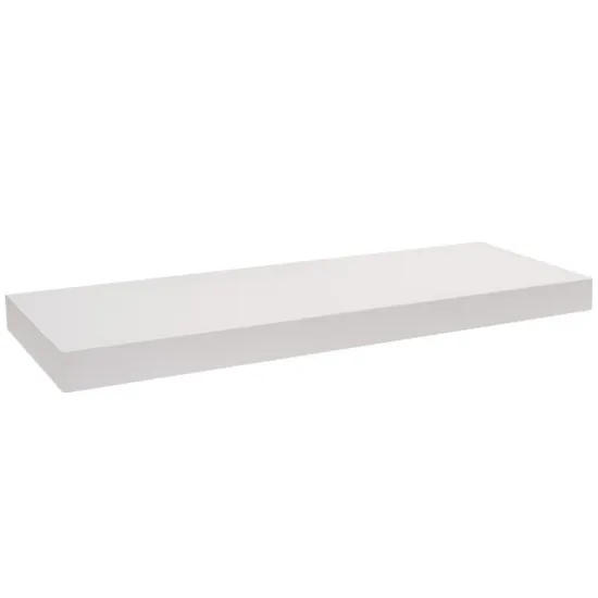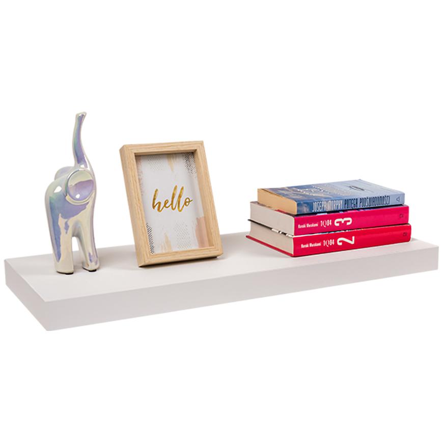 Półka wisząca w kolorze białym z materiału wykonania z płyty wiórowej laminowanej. Idealna do nowoczesnych wnętrz, półka ta oferuje funkcjonalność i elegancję. Doskonale komponuje się z różnorodnymi stylami aranżacyjnymi, zapewniając zarazem trwałość i łatwość w utrzymaniu czystości. Idealna na książki, ozdoby czy drobne przedmioty.