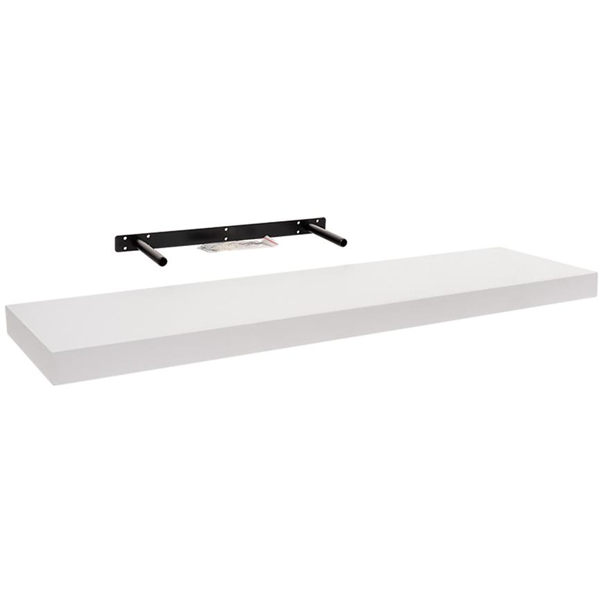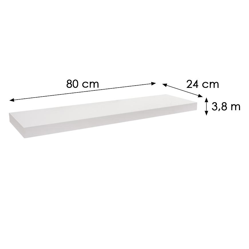 Półka wisząca w kolorze białym z materiału wykonania z płyty wiórowej laminowanej. Idealna do nowoczesnych wnętrz, półka ta oferuje funkcjonalność i elegancję. Doskonale komponuje się z różnorodnymi stylami aranżacyjnymi, zapewniając zarazem trwałość i łatwość w utrzymaniu czystości. Idealna na książki, ozdoby czy drobne przedmioty.