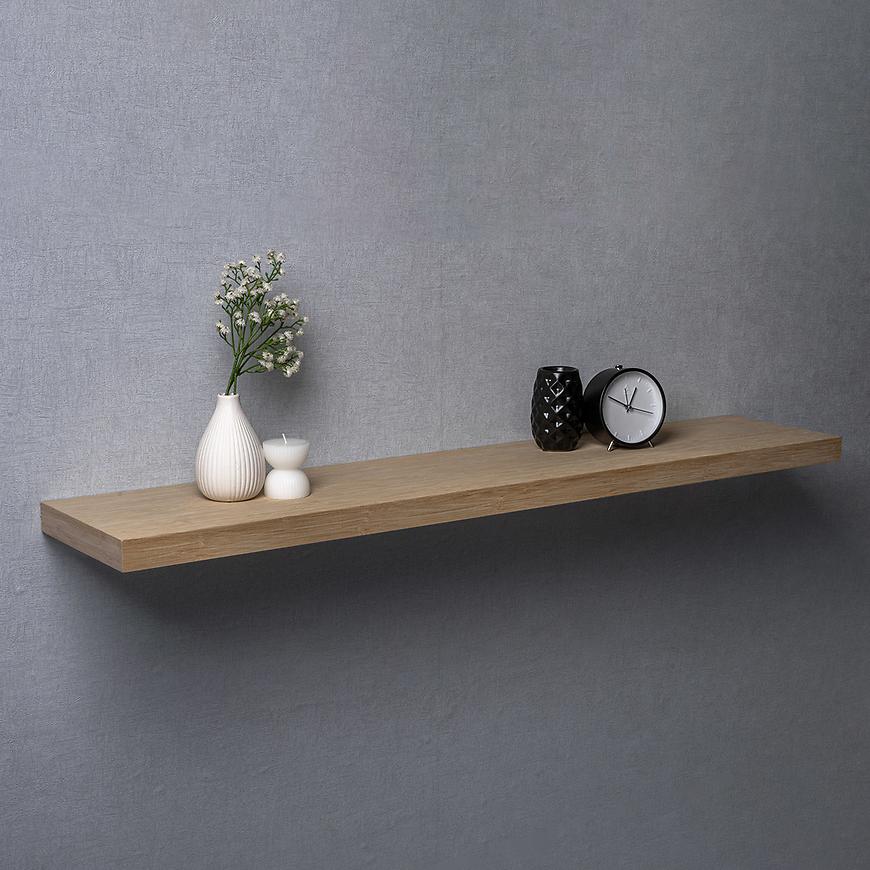 Półka wisząca w kolorze bambus z materiału wykonania z płyty wiórowej laminowanej. Idealna do nowoczesnych wnętrz, półka ta oferuje funkcjonalność i elegancję. Doskonale komponuje się z różnorodnymi stylami aranżacyjnymi, zapewniając zarazem trwałość i łatwość w utrzymaniu czystości. Idealna na książki, ozdoby czy drobne przedmioty.