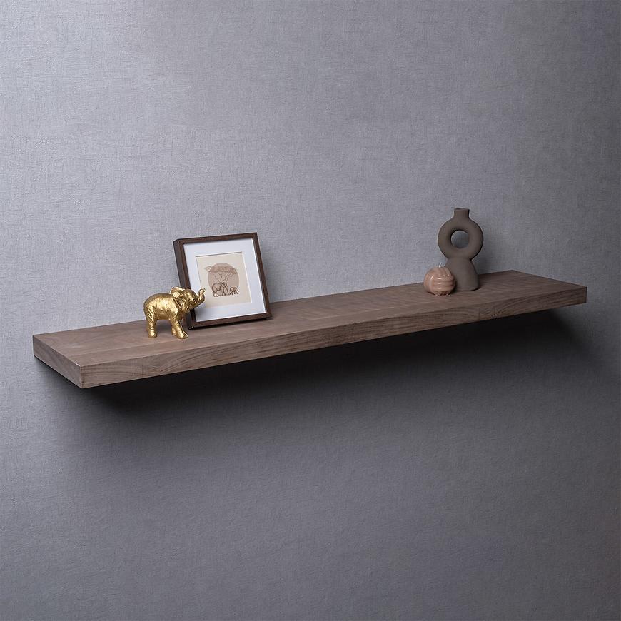 Półka wisząca w kolorze orzech z materiału wykonania z płyty wiórowej laminowanej. Idealna do nowoczesnych wnętrz, półka ta oferuje funkcjonalność i elegancję. Doskonale komponuje się z różnorodnymi stylami aranżacyjnymi, zapewniając zarazem trwałość i łatwość w utrzymaniu czystości. Idealna na książki, ozdoby czy drobne przedmioty.