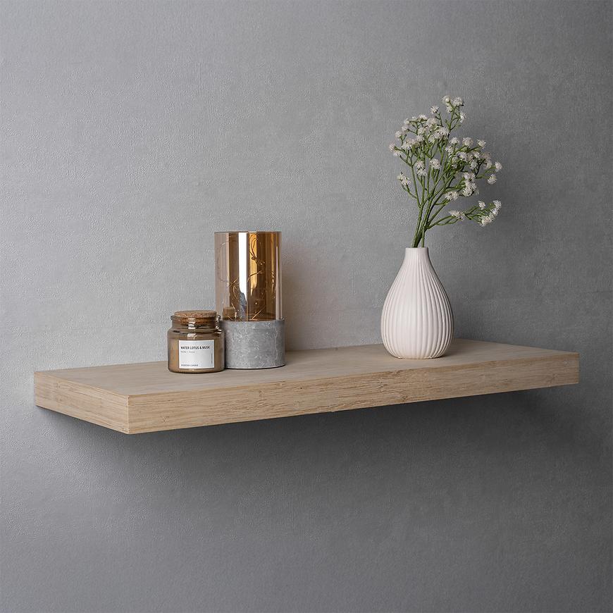 Półka wisząca w kolorze bambus z materiału wykonania z płyty wiórowej laminowanej. Idealna do nowoczesnych wnętrz, półka ta oferuje funkcjonalność i elegancję. Doskonale komponuje się z różnorodnymi stylami aranżacyjnymi, zapewniając zarazem trwałość i łatwość w utrzymaniu czystości. Idealna na książki, ozdoby czy drobne przedmioty.
