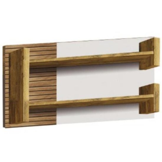 Nowoczesna półka Gardena wykonana płyty wiórowej laminowanej w kolorze ciemnego orzecha i latte.