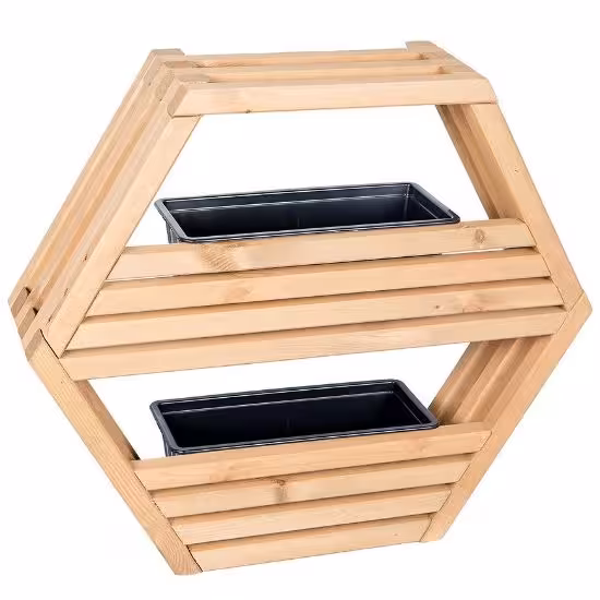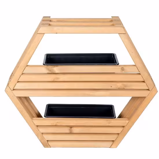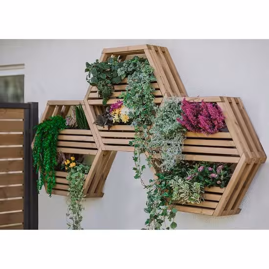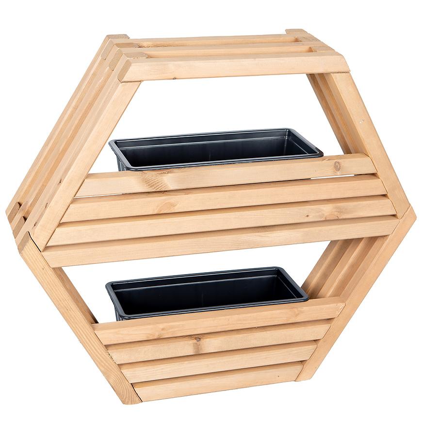 Półka Hexen jest przystosowana do montażu zewnętrznego, dzięki czemu doskonale sprawdzi się jako element dekoracyjny w ogrodzie, na patio czy przydomowym zaciszu. W zestawie znajdują się dwie doniczki, które można umieścić w specjalnie zaprojektowanych na to miejscach, co pozwala na stworzenie efektownej kompozycji z ulubionymi roślinami.