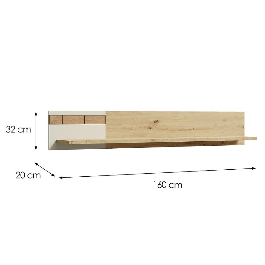 Półka Keks K6A o szerokości 160 cm, wysokości 32 cm i głębokości 20 cm jest idealnym miejscem do wyeksponowania dekoracji, książek, ramek ze zdjęciami czy innych drobnych przedmiotów, które nadają wnętrzu osobistego charakteru. Dzięki solidnej konstrukcji z płyty MDF foliowanej w połączeniu z elementami drewnianymi, półka jest nie tylko estetyczna, ale również wytrzymała. Materiały te zapewniają jej trwałość, a matowe wykończenie dodaje elegancji i nowoczesności, tworząc spójny wygląd z innymi meblami z kolekcji KEKS.