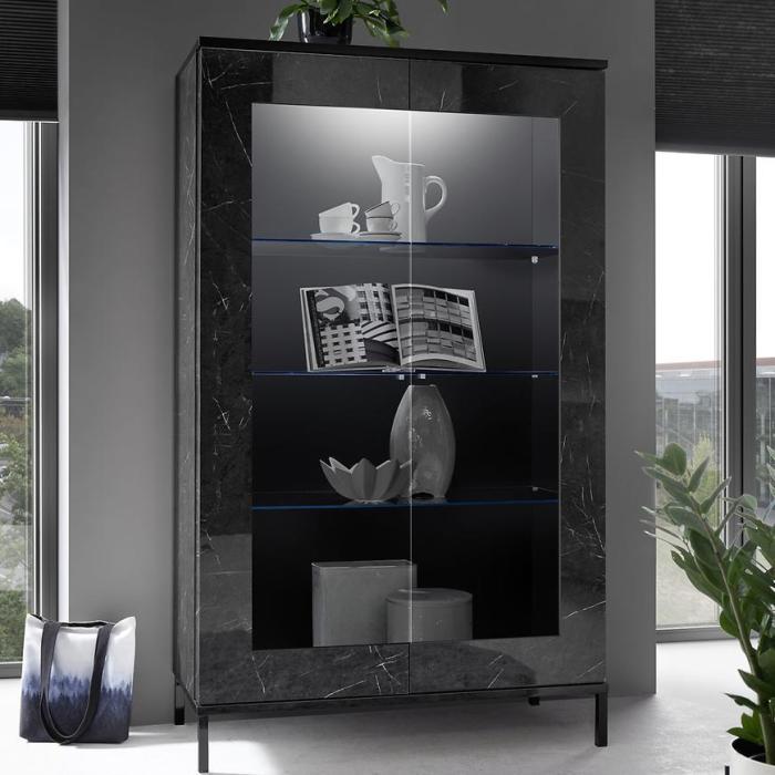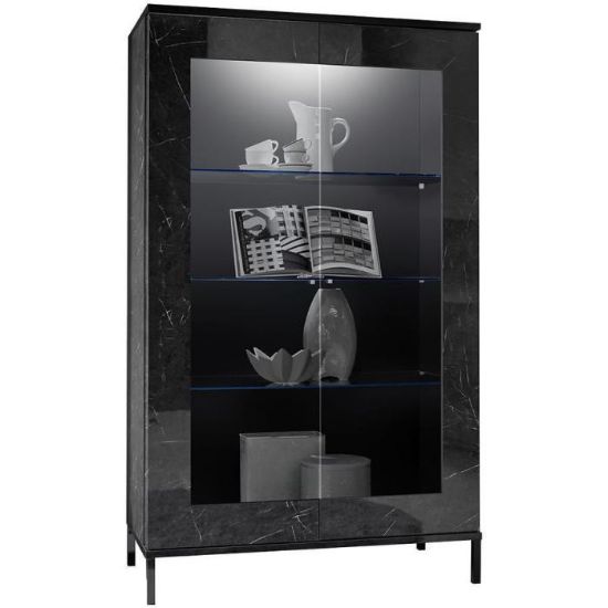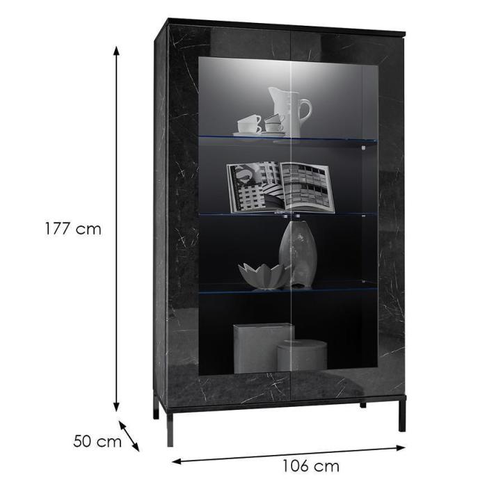 Witryna Mango świetnie prezentuje się w nowoczesnych, a także w klasycznych wnętrzach. Witryna to praktyczny i funkcjonalny mebel. Korpus i front wykonany jest z płyty MDF w kolorze czarny marmur. Mebel posiada 3 półki. Mebel będzie doskonałym dodatkiem do każdego wnętrza ze względu na swoją uniwersalną kolorystykę.