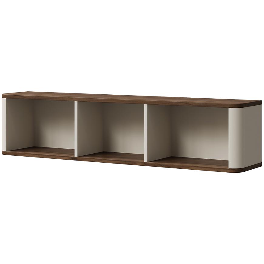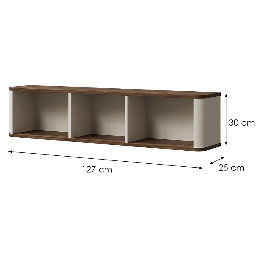 Dzięki modnemu połączeniu kolorów kashmir i orzech, półka świetnie komponuje się z jasnymi i ciemnymi aranżacjami wnętrz. Matowe wykończenie podkreśla nowoczesny charakter mebla, nadając mu subtelnej elegancji.