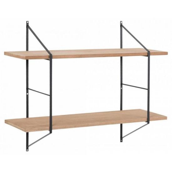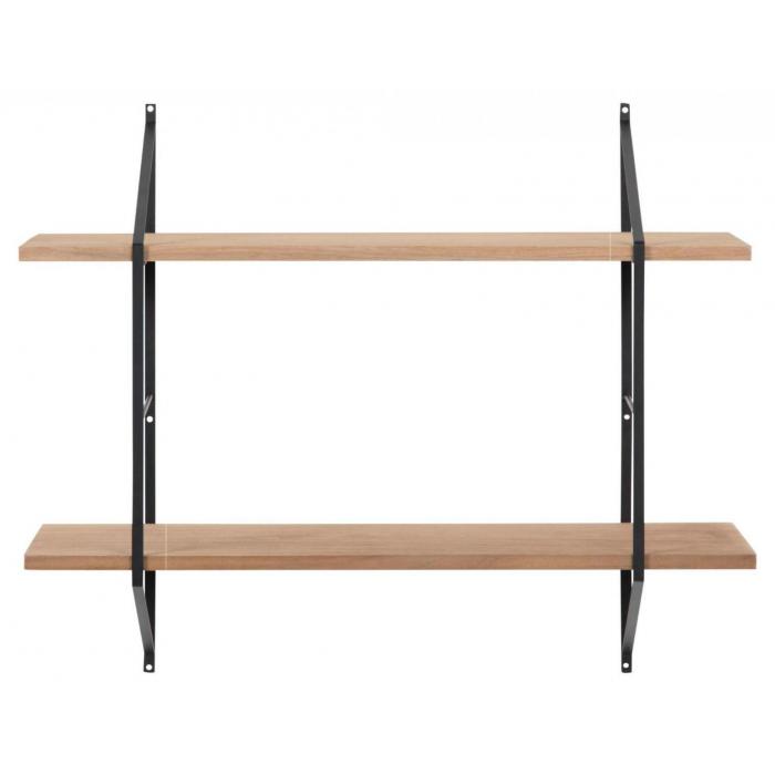 Półka ścienna Brad to oryginalny mebel wyróżniający się nieszablonowym kształtem. Metalowa czarna rama z półkami w jasnym kolorze przyciąga uwagę. Mebel posiada dwie półki na których można postawić ramki ze zdjęciami lub ozdobne figurki. Połaczenia drewna z metalową obudową świetnie sprawdzi się do wnętrz w industrialnym lub loftowym stylu. Mebel będzie pasował do pokoju dziennego, salonu, kuchni oraz do innych, dowolnych pomieszczeń. Ciekawy design sprawia, że będzie odpowiednio komponować się z wieloma aranżacjami.