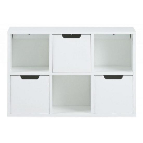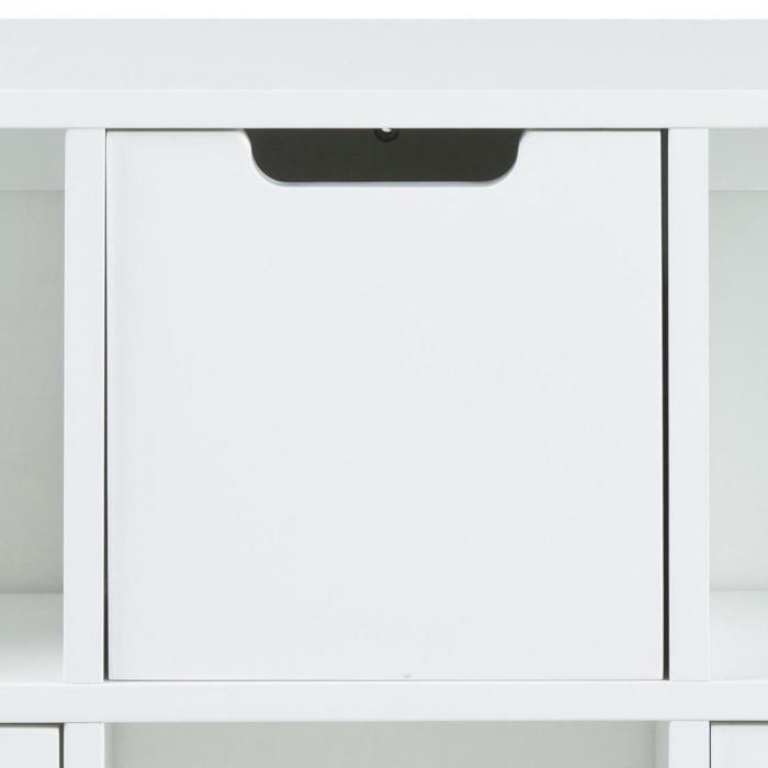 Półka Carol to funkcjonalny mebel. Posiada półki otwarte oraz przestrzenie zamykane szufladami, w których można poukładać ramki na zdjęcia, ozdobe figurki lub różne drobiazgi. Półka wykonana jest z płyty MDF w białym kolorze, który zapewnia jej uniwersalny charakter. Będzi epasowała do wielu wnętrz. Ciekawy design wpasuje się w różnego rodzaju aranżacje.