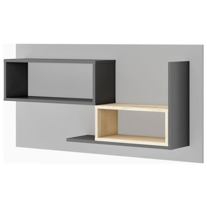 Oryginalna, asymetryczna półka wisząca zapewni dodatkowe miejsce do przechowywania książek lub dekoracji i pozwoli ergonomicznie wykorzystać ściany. Mebel wykonano z wytrzymałej płyty laminowanej wykończonej trwałym obrzeżem ABS.