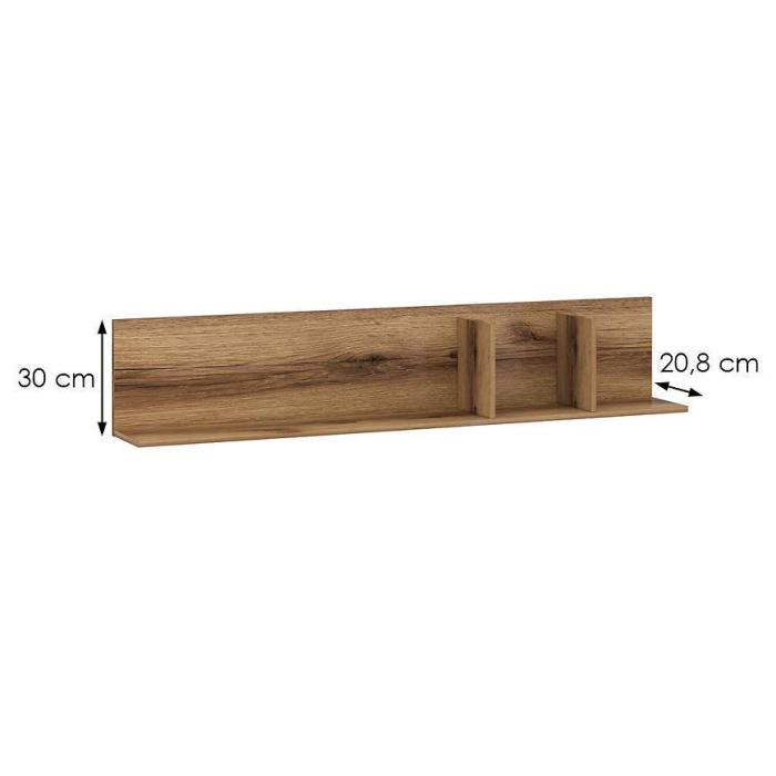 Półka wisząca została wykonana z płyty wiórowej laminowanej w kolorze dąb delano ciemny.