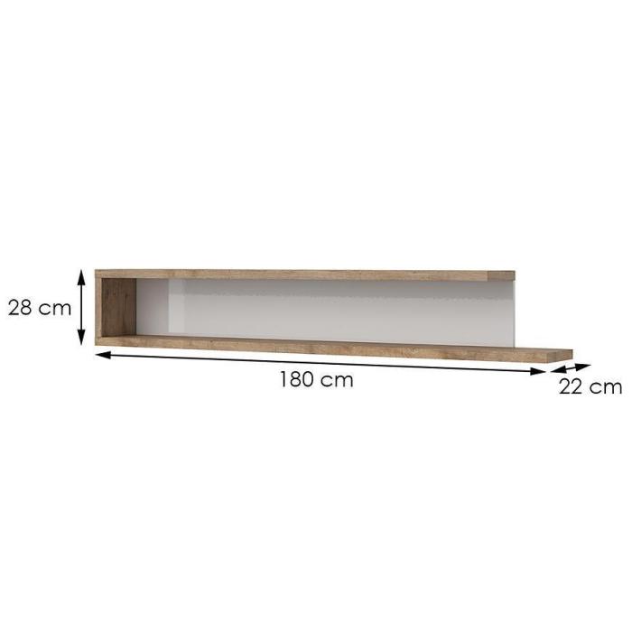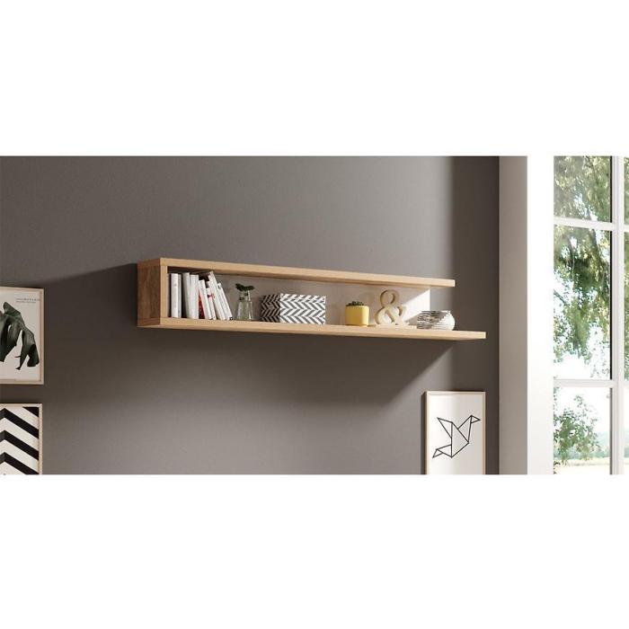 Półka z kolekcji Sintra to przede wszystkim nowoczesność i funkcjonalność w jednym. Doskonale sprawdzi się w każdym pokoju dziennym, salonie. Wygląd mebli jest nowoczesny, a zarazem uniwersalny. Półka wisząca została wykonana z płyty wiórowej laminowanej w kolorze dąb samdal/biały.