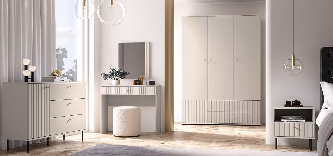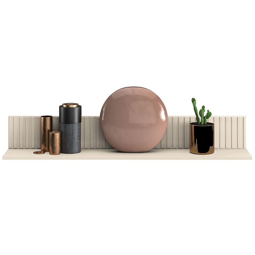 Kolorystyka i wykończenie: Półka utrzymana jest w eleganckim odcieniu cashmere, który nadaje jej wyrafinowany i spokojny wygląd. Matowe wykończenie podkreśla nowoczesny charakter półki, dodając wnętrzu harmonii i elegancji.
