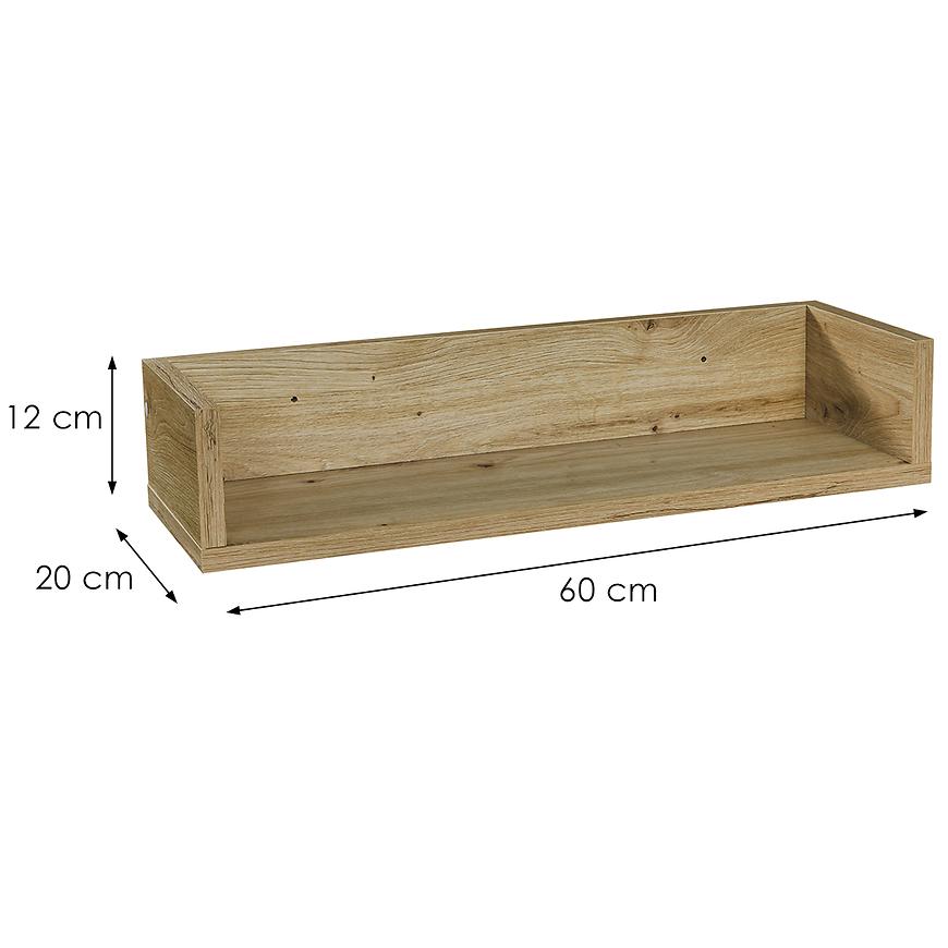 Półka Wisząca 60 Artisan to elegancki mebel w kolorze Dąb Artisan, który doskonale wpasuje się w nowoczesne i klasyczne wnętrza. Wykonana z wysokiej jakości płyty laminowanej, jest odporna na uszkodzenia i łatwa do utrzymania w czystości. Dzięki swojej szerokości 60 cm, półka jest idealna do przechowywania książek, dekoracji czy innych drobnych przedmiotów. Zawieszona na ścianie, oszczędza przestrzeń na podłodze, co sprawia, że świetnie sprawdza się w mniejszych pomieszczeniach.
