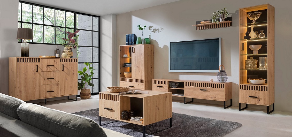 System mebli Lamos to idealne rozwiązanie dla tych, którzy poszukują funkcjonalnych, estetycznych i solidnych mebli do swojego salonu czy jadalni. Dzięki starannie dobranym materiałom oraz dopracowanemu designowi, system Lamos wpisuje się zarówno w klasyczne, jak i industrialne aranżacje wnętrz.