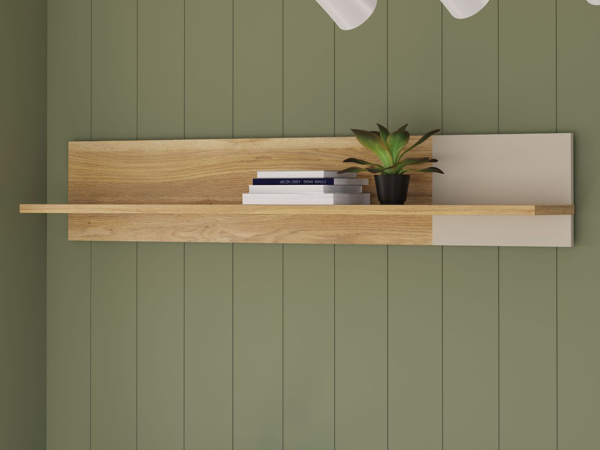Dzięki szerokości 140 cm półka zapewnia dużo miejsca na książki, dekoracje, rośliny czy inne drobne przedmioty, pomagając utrzymać porządek i estetyczny wygląd wnętrza. Doskonale sprawdzi się w salonie, sypialni, gabinecie czy przedpokoju, nadając przestrzeni lekkości i nowoczesnego stylu.