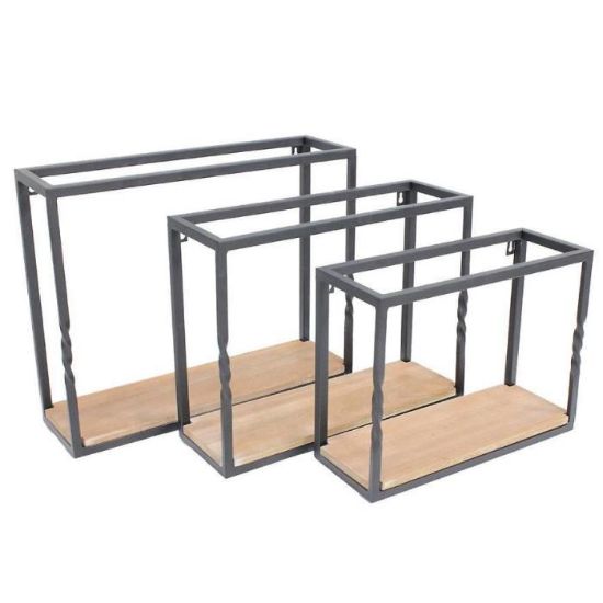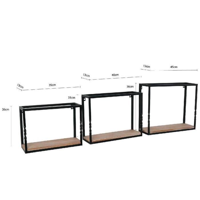 Półka to przede wszystkim nowoczesność i funkcjonalność w jednym. Doskonale sprawdzi się w każdym salonie. Wygląd mebli jest loftowy, a zarazem uniwersalny. Półka wisząca została wykonana z drewna i metalu w kolorze naturalny/czarny. Cena zawiera trzy półki o wymiarach 45x36x13, 40x31x13, 35x26x13 cm.