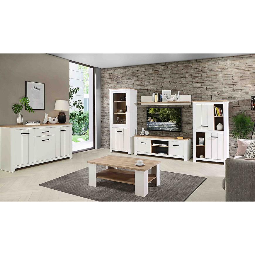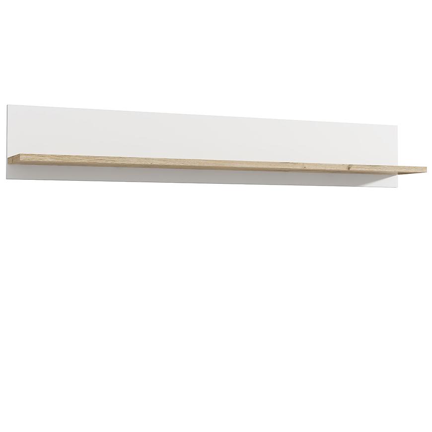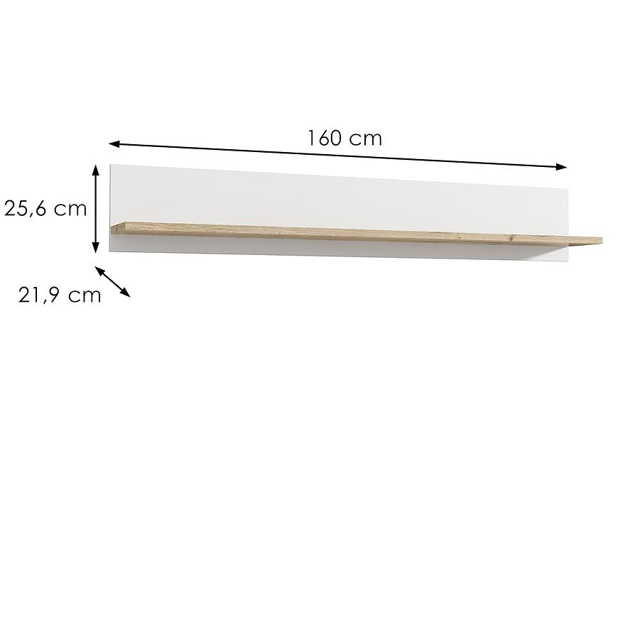 Kolorystyka: Półka utrzymana jest w biało-matowym wykończeniu, które współgra z dębowym bianco wybarwieniem, tworząc ciepły i przyjazny dla oka kontrast. Taka kolorystyka sprawia, że półka doskonale komponuje się z różnorodnymi aranżacjami wnętrz, wprowadzając do nich świeżość i nowoczesność.