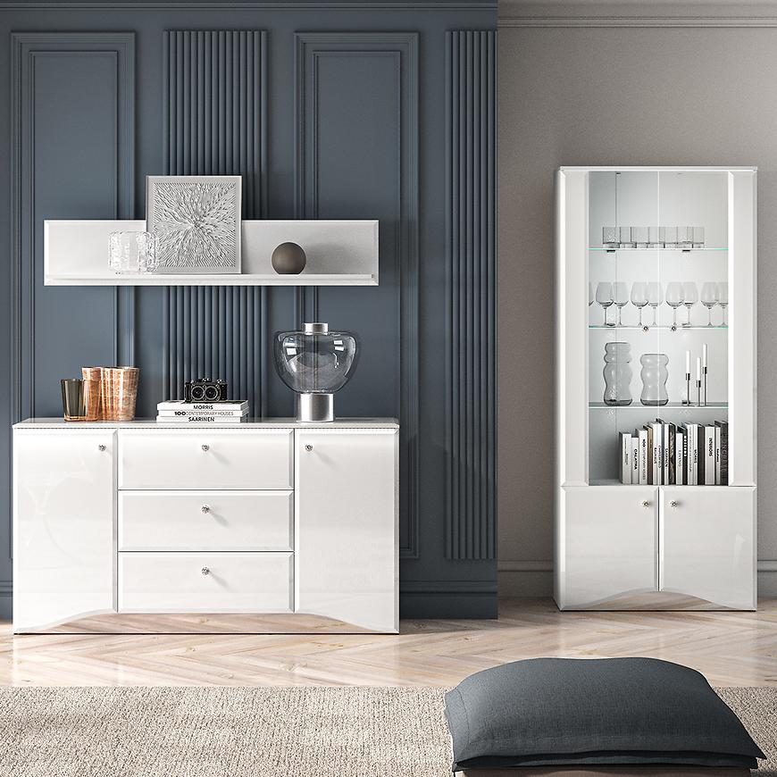 Półka wisząca Glamour to subtelny, a zarazem praktyczny element wyposażenia wnętrza, który doskonale sprawdzi się zarówno w salonie, jak i w sypialni. Wykonana z wysokiej jakości płyty MDF i wykończona w białym połysku, stanowi idealne uzupełnienie aranżacji kolekcji Glamour. Na półce można wyeksponować dekoracje, książki, zdjęcia czy inne drobiazgi, które podkreślą charakter wnętrza. Jej minimalistyczna forma sprawia, że nie przytłacza przestrzeni, a jednocześnie dodaje jej nowoczesnej elegancji.