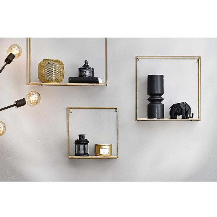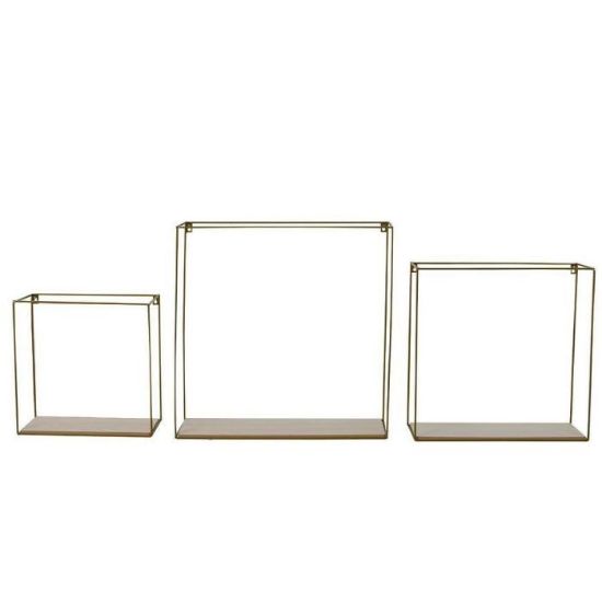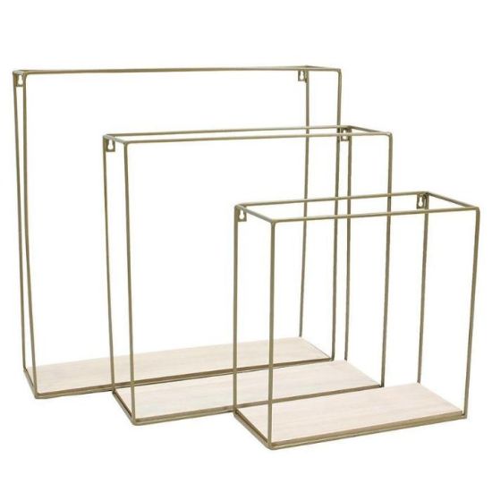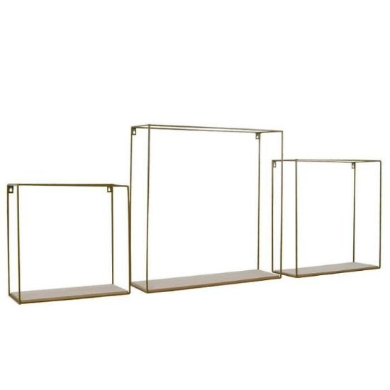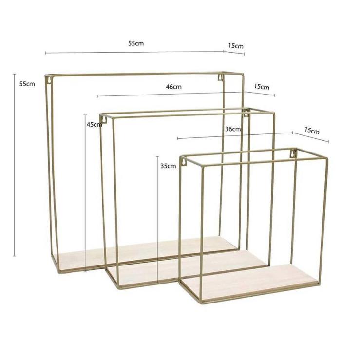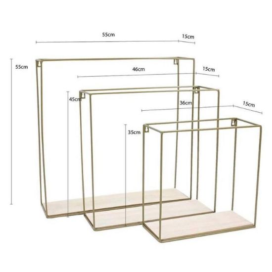 Półka to przede wszystkim nowoczesność i funkcjonalność w jednym. Doskonale sprawdzi się w każdym salonie. Wygląd mebli jest loftowy, a zarazem uniwersalny. Półka wisząca została wykonana z drewna i metalu w kolorze naturalny/złotym. Cena zawiera trzy półki o wymiarach 55x55x15, 45x16x15, 35x36x15 cm.