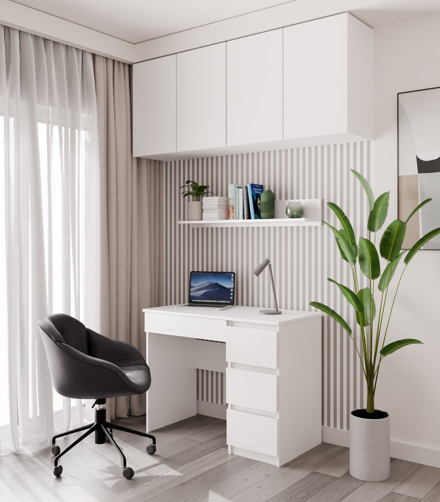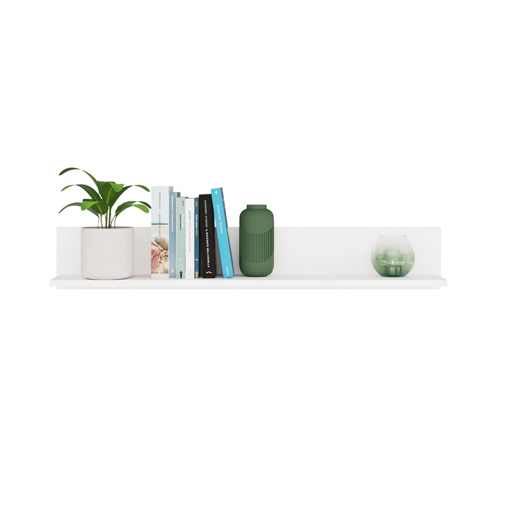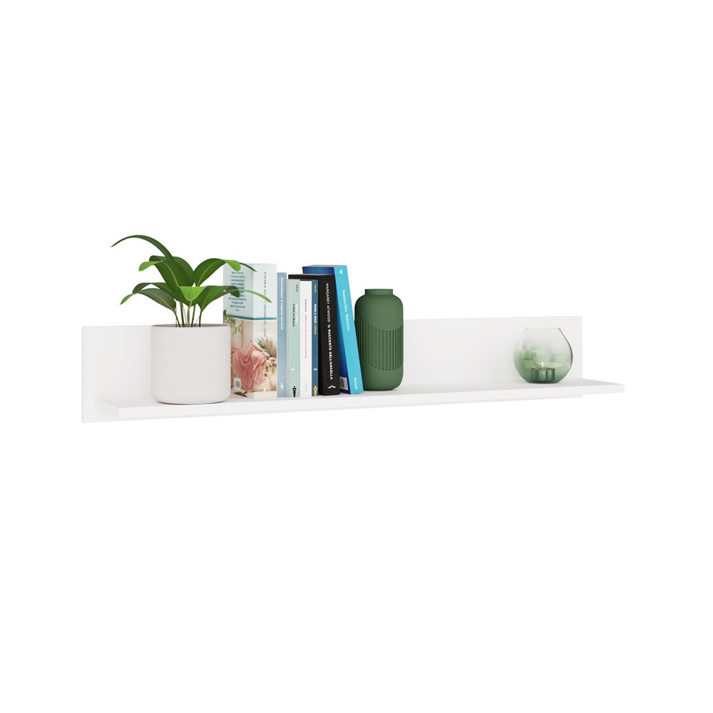 Prosta forma półki Ilmo pozwala dopasować ją do różnych stylów wnętrz – od minimalistycznych, przez nowoczesne, aż po klasyczne aranżacje. Neutralna biel ułatwia zestawienie półki z innymi meblami, dzięki czemu można stworzyć spójną i harmonijną przestrzeń w salonie, sypialni czy biurze. Tylnia ścianka nie tylko podkreśla estetykę półki, ale także zabezpiecza przed przesuwaniem się przedmiotów, dodając praktycznego wymiaru codziennemu użytkowaniu.