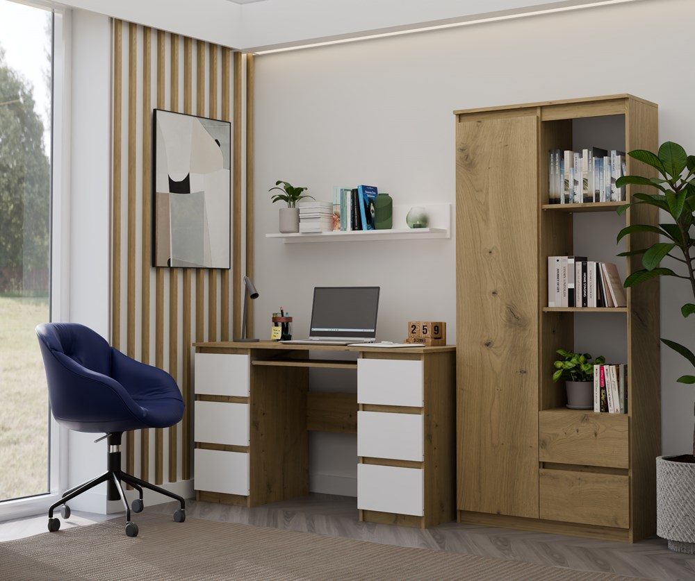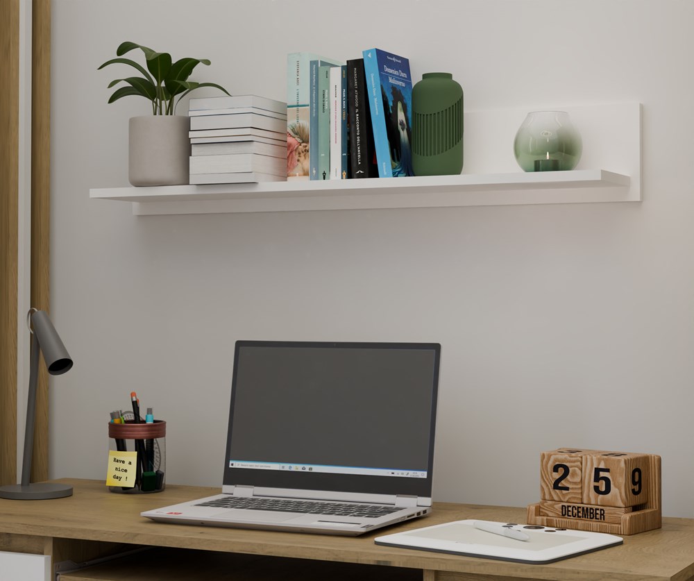 Półka wisząca Ilmo tworzy spójną aranżację w zestawieniu z komodami, biurkami i szafkami RTV. Pozwala na organizację przestrzeni w sposób estetyczny i praktyczny, a jednocześnie daje możliwość personalizacji – ustawienie ulubionych książek, dekoracji lub pamiątek nada wnętrzu charakteru i przytulności.