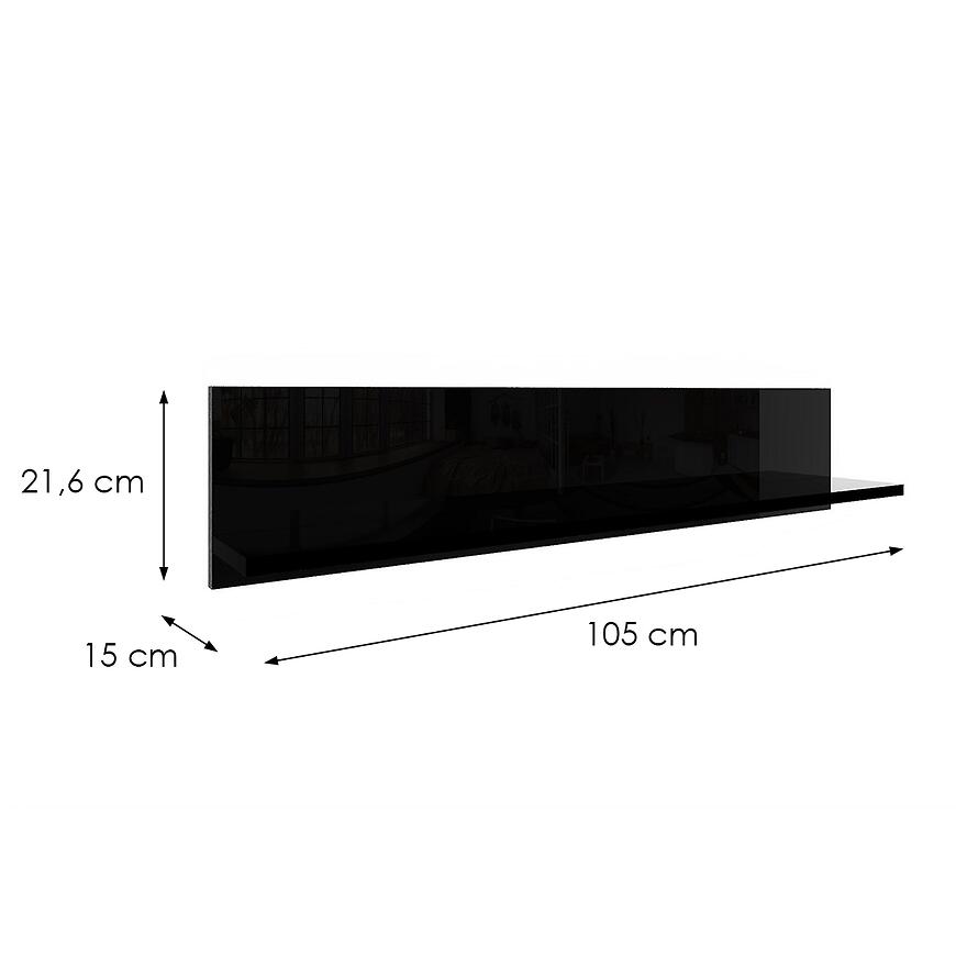 Półka wisząca Izumi-90-BL w kolorze czarny mat/połysk to nowoczesny i funkcjonalny mebel wykonany z trwałej płyty wiórowej laminowanej. Jej wymiary to szer. 105 cm, wys. 21,6 cm, gł. 15 cm, a waga 4,42 kg sprawia, że montaż jest prosty. Połączenie matowego wykończenia z połyskiem nadaje elegancki wygląd, a minimalistyczny design pasuje do różnych wnętrz. Idealna do przechowywania dekoracji, książek czy drobnych przedmiotów, zapewnia porządek i stylową aranżację.