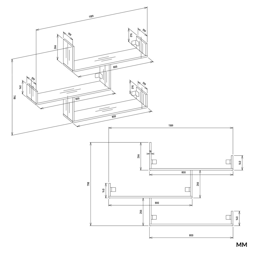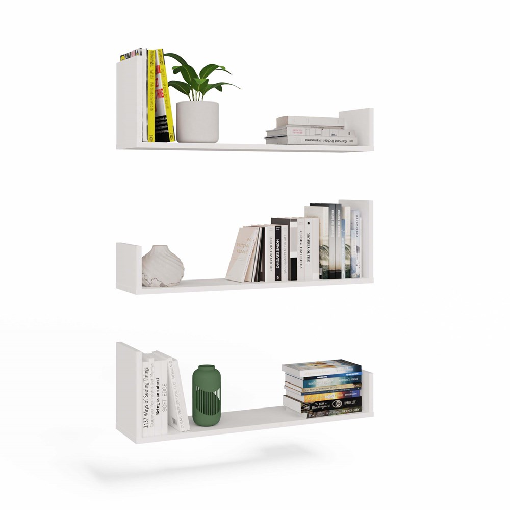 Półki wykonano z wysokiej jakości płyty meblowej laminowanej o grubości 16 mm, co zapewnia trwałość i stabilność. Laminowana powierzchnia jest odporna na zarysowania i łatwa w czyszczeniu, dzięki czemu półki zachowują estetyczny wygląd przez lata. Praktyczne boczne ścianki stabilizują przechowywane przedmioty, takie jak książki, ramki, rośliny czy drobiazgi dekoracyjne.