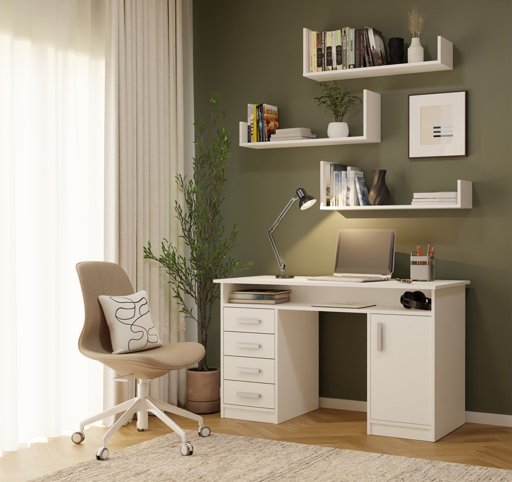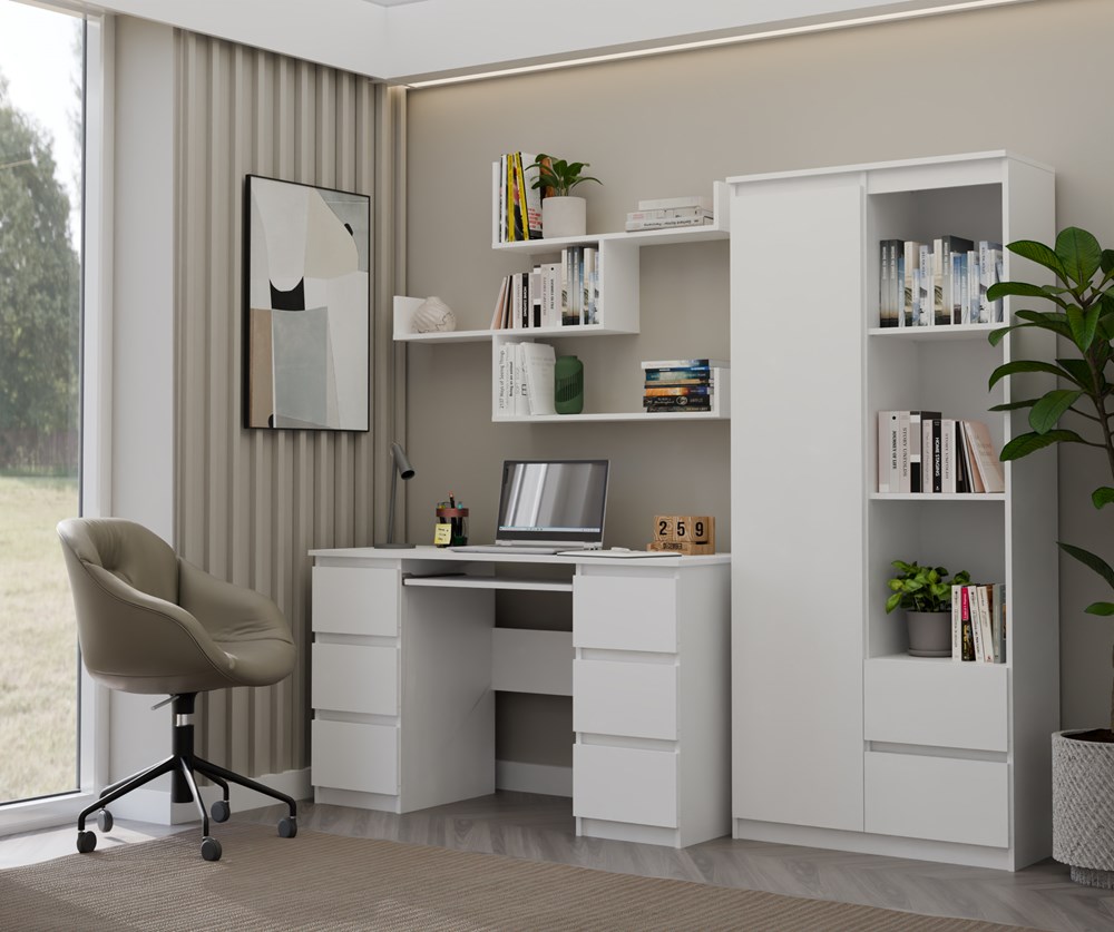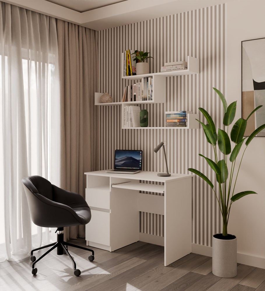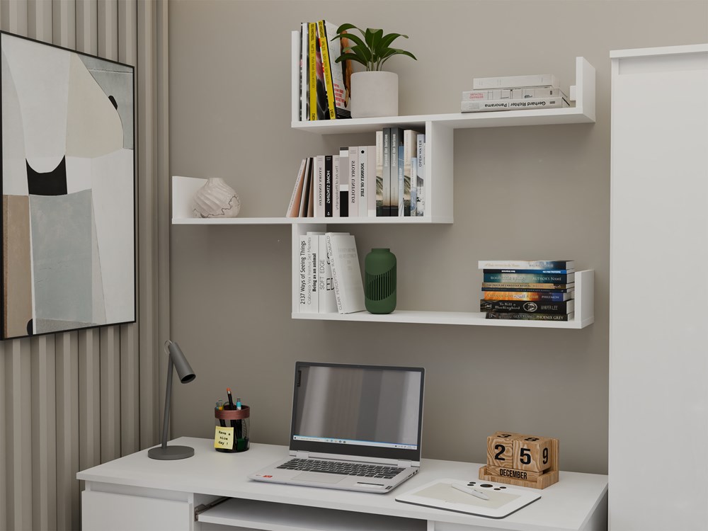 Dzięki przemyślanej konstrukcji półki Koobi idealnie sprawdzą się zarówno w dużych, jak i niewielkich pomieszczeniach. Lekka forma i modułowy układ pozwalają stworzyć praktyczne miejsce do przechowywania, jednocześnie zachowując estetykę nowoczesnego wnętrza. Biała półka wisząca Koobi łączy elegancję z uniwersalnością, podkreślając charakter Twojego salonu, pokoju młodzieżowego czy biura.