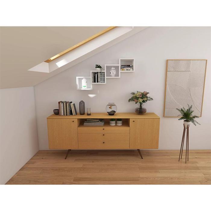 Wykonana z laminowanej płyty wiórowej, półka NR 8 jest odporna na codzienne użytkowanie. Matowe wykończenie frontów i korpusu dodaje meblowi nowoczesnego charakteru i sprawia, że pasuje do minimalistycznych aranżacji.