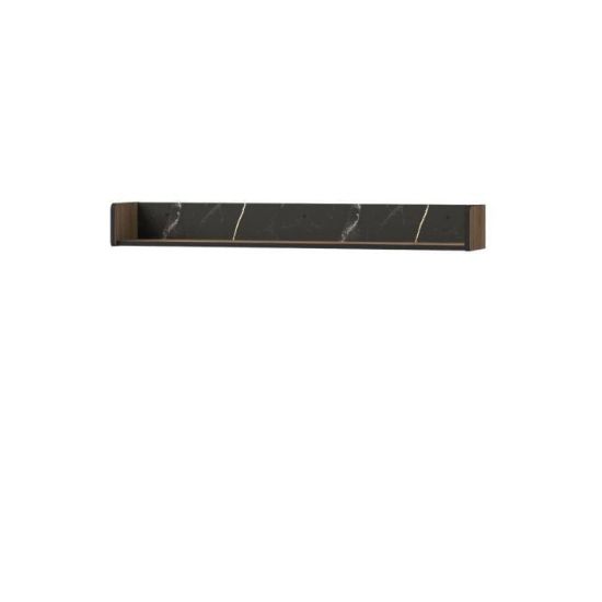 System TIVOLI to nowoczesny system pokojowy w kolorystyce orzech warmia, san sebastian. Na frontach jako element ozdobny zastosowano ryflowane wstawki MDF w kolorze czarnym. Nóżki wykonane z metalu w kolorze czarnym, natomiast uchwyty wykonane zostały z tworzywa sztucznego. Produkt nie posiada oświetlenia LED. Dostępny w paczkach do samodzielnego montażu.