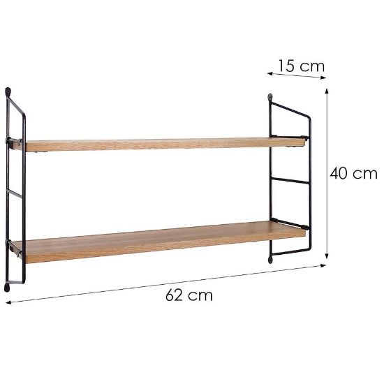 Dzięki wymiarom 62 cm szerokości i 40 cm wysokości półka oferuje optymalną przestrzeń do umieszczenia dekoracji, książek, doniczek z roślinami czy innych ozdób, nadając wnętrzu spersonalizowany charakter. Głębokość 15 cm zapewnia stabilność i wygodę w użytkowaniu, umożliwiając ustawienie na niej także nieco większych przedmiotów.