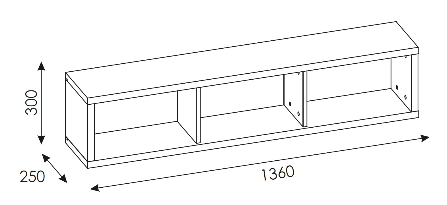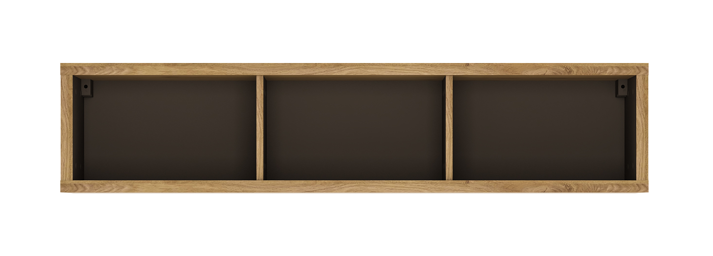 Półka została zaprojektowana tak, aby trzy oddzielne przegrody mogły pełnić różnorodne funkcje. Na jednej możesz ustawić książki, na drugiej kolekcję płyt CD, a na trzeciej wyeksponować rodzinne zdjęcia, ozdobną świecę lub niewielką doniczkę z rośliną. Wewnętrzne i boczne ścianki stabilizują zawartość, zapobiegając przewracaniu się książek czy dekoracji. Taki podział przestrzeni pozwala na utrzymanie porządku i tworzenie atrakcyjnych aranżacji ściennych, które przyciągają wzrok.