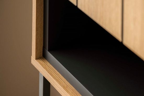 Shirley Dąb to kolekcja, która doskonale wpisuje się w aktualne trendy wnętrzarskie – oferując nowoczesne rozwiązania użytkowe w oprawie inspirowanej naturalnymi materiałami i surowym charakterem loftowych przestrzeni.