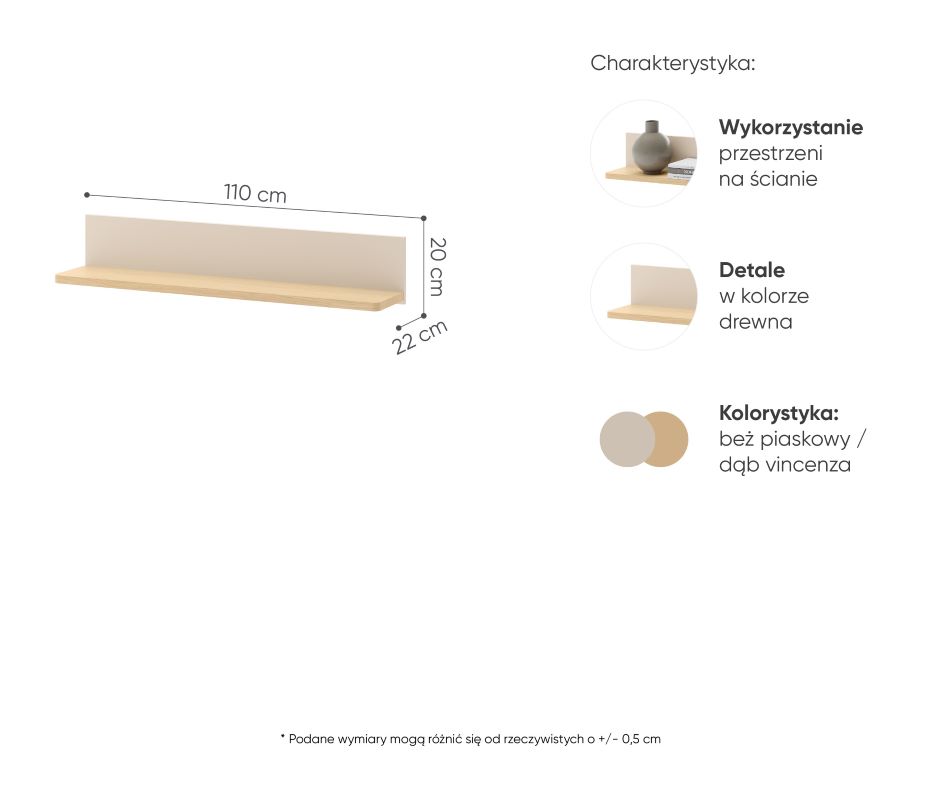 - Półka wisząca Story SO-14 beż piaskowy/dąb vincenza