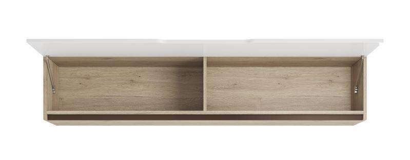 Nowoczesna kolekcja Sanremo to porpozycja dla miłosników minimalizmu, którzy cenią sobie również funkcjonalność. Korpus w kolorze jasnego drewna oraz połyskujący biały front wykonano z płyty MDF zawierającej włókna drzewne. Kompozycja tych dwóch barw - bieli i jasnego drewna - wprowadzi do pomieszczenia powiew natury. Możliwość zamontowania dodatkowego oświetlenia LED jest odpowiednim rozwiązaniem dla osób, które chcą wyeksponować znajdujące się na półkach przedmioty. Kolekcja Sanremo szczególnie dobrze zaprezentuje się w jasnych pomieszczeniach urządzonych w stylu skandynawskim.