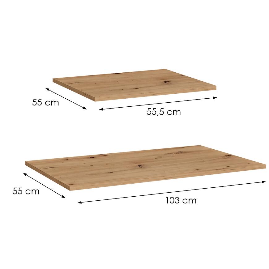 Półki do szafy Marbella/Alicante 150 (komplet 2 szt.) biały to praktyczne wyposażenie wnętrza garderoby, które pozwala maksymalnie wykorzystać przestrzeń przechowywania. Zestaw obejmuje dwie półki o wymiarach 55,5x55x3,5 cm oraz 103x55x3,5 cm, dzięki czemu bez problemu dopasujesz je do szafy o szerokości 150 cm. To idealne rozwiązanie dla osób, które chcą zwiększyć ilość miejsca na ubrania, pościel, pudełka czy akcesoria.