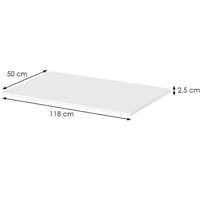 Półka została wykonana z płyty wiórowej laminowanej w kolorze białym. Jest uzupełnieniem do szaf z kolekcji Evergreen MR-000000003363105, MR-000000003363106, MR-000000003363107.