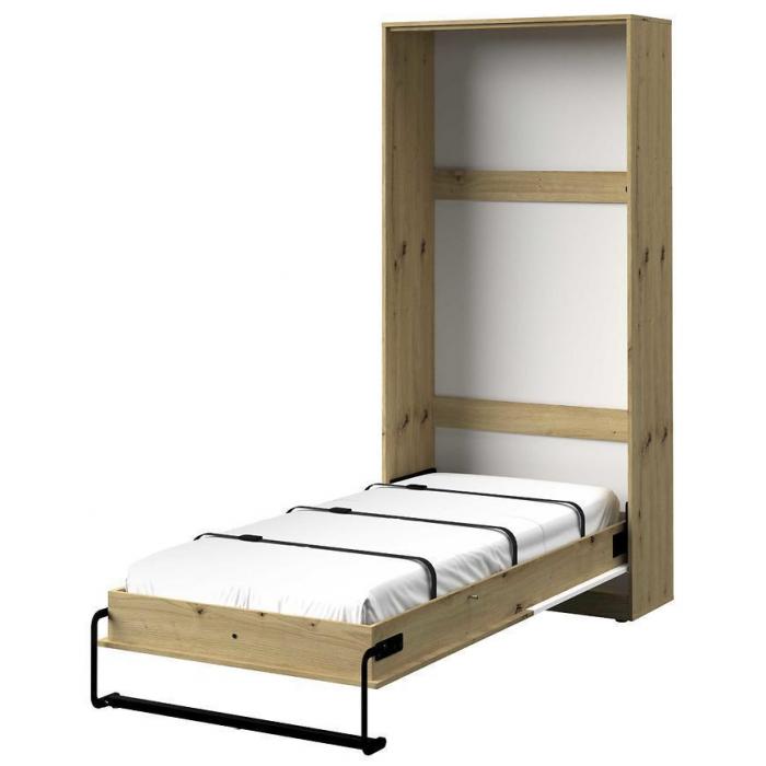 Półko-Tapczan Pionowy Nero 15 – Biały Połysk to nowoczesny i funkcjonalny mebel, który łączy elegancki design z praktycznym wykorzystaniem przestrzeni. Wykonany z płyty wiórowej laminowanej w wybarwieniu biały/dąb artisan z połyskiem, tapczan prezentuje się stylowo i nowocześnie, dodając wnętrzu lekkości i świeżości. Oferuje powierzchnię spania 90x200 cm, zapewniając wygodny dostęp i komfort codziennego użytkowania. W zestawie znajduje się stelaż o wymiarach dopasowanych do standardowego materaca 90x200 cm, natomiast materac można dobrać według własnych potrzeb.