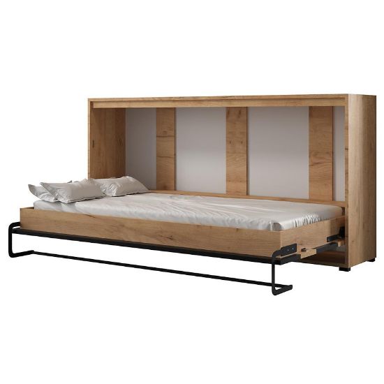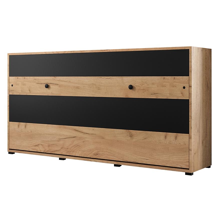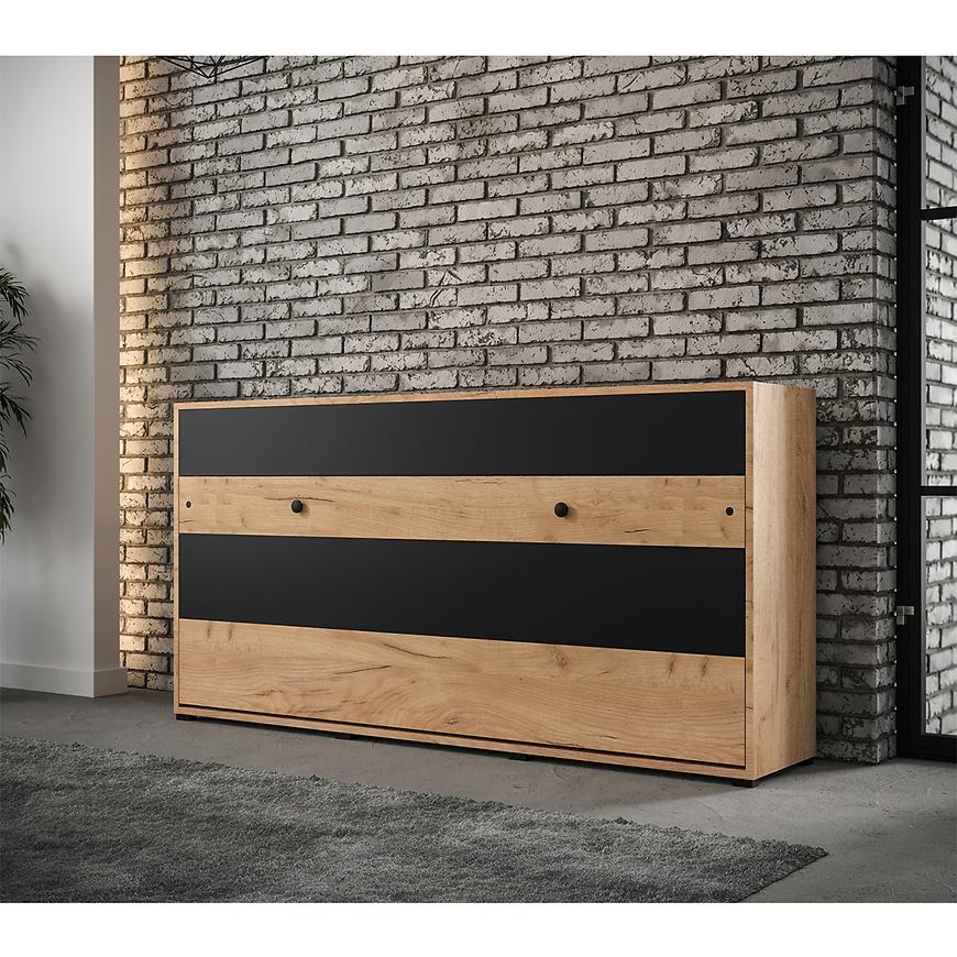 Konstrukcja łóżka obejmuje solidną płytę o grubości 22 mm dla korpusu i 16 mm dla paneli frontowych. Noga metalowa oraz rama stelaża ze sklejki gwarantują trwałość i stabilność. Mechanizm sprężynowy wspomagający otwieranie i zamykanie łóżka sprawia, że korzystanie z niego jest proste i wygodne.