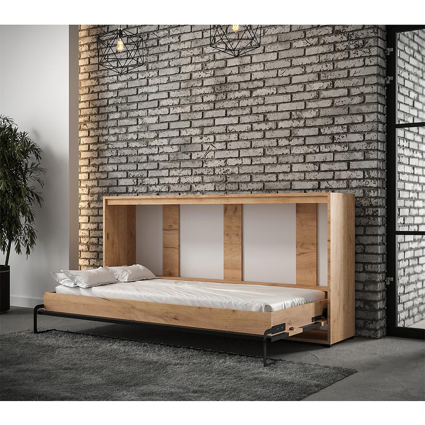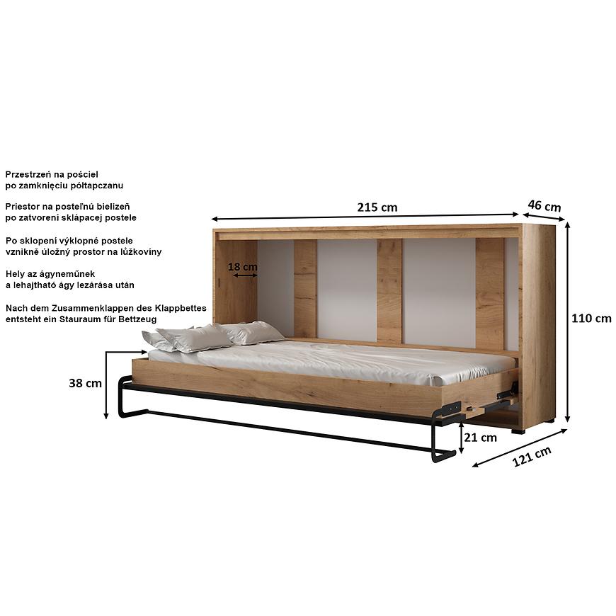 Półkotapczan ten oferuje powierzchnię spania o wymiarach 90x200 cm, co sprawia, że doskonale sprawdzi się w pomieszczeniach o ograniczonej przestrzeni. Stelaż w komplecie, wykonany z solidnej płyty wiórowej laminowanej, gwarantuje stabilność i trwałość. Automat do rozkładania z mechanizmem sprężynowym ułatwia otwieranie i zamykanie łóżka, a blokada zabezpiecza przed przypadkowym otwarciem.