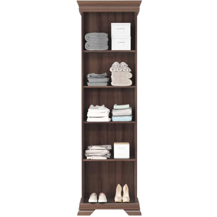 Półszafa Kora KRD1 to dodatkowe uzupełnienie sypialni lub pokoju dziennego. Dostępna kolorystyka umożliwia jej dopasowanie do różnych aranżacji i otrzymania pożądanego efektu - ocieplenia pomieszczenia, podkreślenia elegancji lub skonsolidowania przestrzeni. Model znajdzie też zastosowanie w salonie i w przedpokoju. Wszystko dzięki dobrze zaprojektowanej, dodatkowej powierzchni na przechowywanie rzeczy. Dzięki licznym półkom znakomicie sprawdzi się jako przechowalnia ubrań lub podręcznych akcesoriów. Półszafa Kora KRD1 posiada masywne nogi, ozdobne wykończenie dolnej i górnej ramy oraz stylizowane uchwyty, co pozwala na zachowanie designu i aranżację eleganckich pomieszczeń. Klasyczna stylistyka mebla nie ogranicza jego funkcjonalności. Zestaw to dwudrzwiowa szafa, gdzie za frontem ukryto trzy półki w górnej części oraz otwartą przestrzeń w jej dolnej części. Całość wykonano z solidnej płyty laminowanej oraz przy użyciu dodatkowego wzmocnienie obrzeży. Produkt przeznaczony jest do samodzielnego montażu, a także objęty gwarancją producenta.