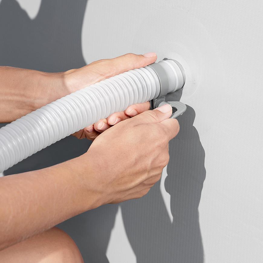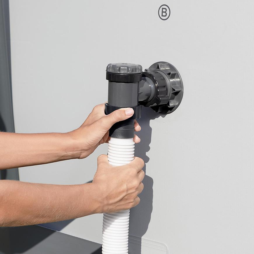Pompa pasuje do basenów naziemnych o pojemności 1,100-31,700 L, a dzięki dołączonym adapterom współpracuje z zaworami gwintowanymi 3,8 cm i 3,2 cm.