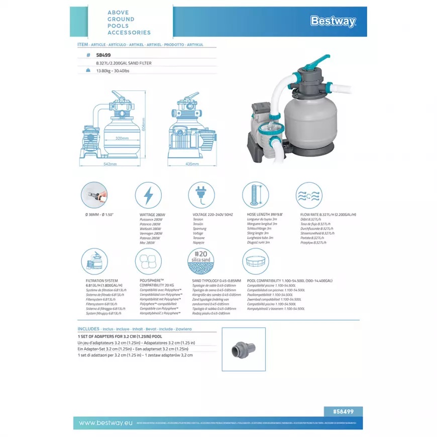 - Pompa do basenów piaskowa bestway 8,327l/h 58499