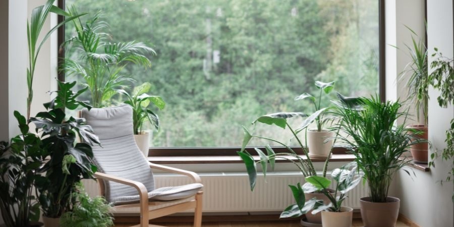 Przestrzeń do nauki i relaksu w botanicznym wnętrzu