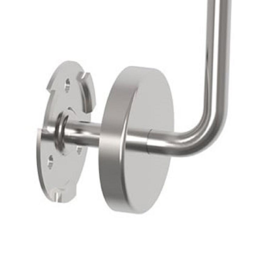 Poręcz została zaprojektowana z myślą o trwałości oraz stabilności montażu. Trzy punkty mocowania umożliwiają równomierne rozłożenie obciążenia, co przekłada się na solidne przymocowanie do ściany. Waga 6,5 kg dodatkowo świadczy o masywnej konstrukcji i wysokiej jakości wykonania. Rozeta maskująca estetycznie zakrywa miejsce montażu, dzięki czemu całość prezentuje się schludnie i profesjonalnie.
